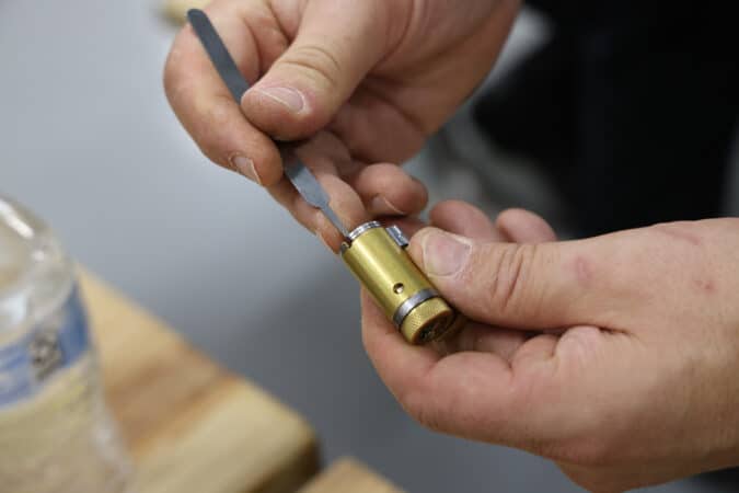 Our training group at Rock’a Lock’a was filled with skilled lockpickers, so our instructors went straight to more complex locks and advanced topics. The ingenuity of lock designers, as well as those looking to outsmart them, is fascinating. Some locks have check pins; we learned to use a thin hook to push them out of the way. Some locks have secondary shear lines that are difficult to defeat without specialized tools.