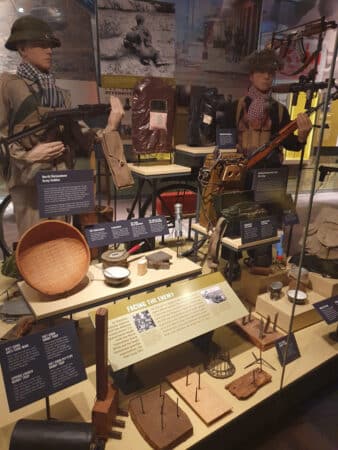 This gallery tells the story of WWII and contains the museum’s most extensive collection of artifacts. You will follow the rise of the Axis powers and the Greatest Generation’s fight against fascism. You’ll see the equipment and weaponry that gave GIs the tools for victory. Other displays include various uniforms and personal items from both sides, including Audie Murphy’s service ribbons, Hermann Goering’s Field Marshall baton, and Emperor Hirohito’s sword collection.