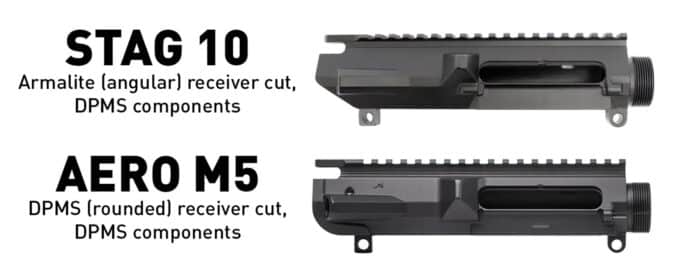 At first glance, you might think the Stag 10 Pursuit is an Armalite-pattern rifle inside and out, since its receivers have the characteristic angular cut behind the rear takedown pin. However, like its sibling the Aero M5 — which has a rounded receiver cut — it uses all DPMS Gen 1 style components. While certainly confusing, this is actually beneficial, since most aftermarket AR10 parts are designed for DPMS specs.